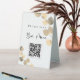 A chic white background. Decorated with watercolored golden eucalyptus, sprigs.  Personalise and add your own QR code to your website with the bar menu