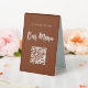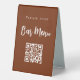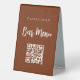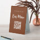 A burnt orange, brown background, white text. Personalise and add your own QR code to your website with the bar menu.