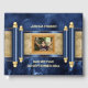A beautiful vibrant navy blue and black faux marble infused background has a blue and faux gold scroll on it with a text template for your personalised wording and a photo inlay for your custom photograph. This design is ideal for your son celebrating a bar mitzvah or for new business launches; corporate events or any business that would like to keep a record of guests attending their show or opening.