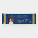 Large Long Bar Mitzvah Welcome and Mazel Tov Congratulations Banner with Personalised photo on a navy blue background with gold sparkly glitter stripe border edges. Add custom wording, fonts, or more photos and remove the gold glittler border by clicking "Customise Further."