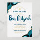 Be proud, rejoice and showcase this milestone of your favourite Bar Mitzvah! Send out this cool, unique, modern, personalised real gold foil invitation for an event to remember. Dark teal blue script typography, real gold foil sans serif typography, and a real foil gold Star of David overlay a simple, clean white background with turquoise blue agate accented with real gold foil gold veins. Personalise the custom text with your Bar Mitzvah’s name, date, and venue information. Guaranteed to add stylish fun to his special occasion!