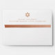 Copper Stripe and Star of David on mailing envelopes for a Bar Mitzvah or Bat Mitzvah with preprinted return address on the back flap. Faux copper foil effect printed inside for a luxurious upgrade effect.