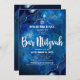 Bar Mitzvah Modern Blue Watercolor Agate Script In Invitation