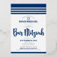 Be proud, rejoice and showcase this milestone of your favourite Bar Mitzvah! Send out this cool, unique, modern, personalised invitation for an event to remember. Bold, navy blue script typography, real foil Star of David and a navy blue and real foil silver striped tallit inspired graphic overlay a simple, white background. Personalise the custom text with your Bar Mitzvah’s name, Hebrew name in real silver foil, date, and venue information. Guaranteed to add stylish fun to his special occasion!