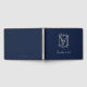 This elegant minimalist Bar Mitzvah party Guest Book has a navy blue background, grey monogram, and white script text. Easy to personalise, just change or delete example name and text on front and spine. All Rights Reserved © 2024 Alan & Marcia Socolik.