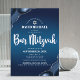 Be proud, rejoice and showcase this milestone of your favourite Bar Mitzvah! Send out this cool, unique, modern, personalised invitation for an event to remember. White script typography and Star of David overlay a deep navy blue ombre background with steel blue agate accented with faux silver veins. Personalise the custom text with your Bar Mitzvah’s name, date, and venue information. Guaranteed to add stylish fun to his special occasion!