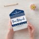 Be proud, rejoice and showcase this milestone of your favourite Bar Mitzvah! Send out this cool, unique, modern, custom all-in-one invitation for an event to remember. Bold, navy blue script typography, Star of David and a navy blue and faux silver glitter striped tallit inspired graphic overlay a simple, white background. This all-in-one product is an unique combination of a custom invitation, including an evening venue, with an easy to tear off perforated RSVP postcard. Personalise the custom text with your Bar Mitzvah’s name, date, and venue information. Guaranteed to add stylish fun to his special occasion!
