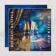 This design features a luxurious gold fabric on the left side, merging into a vivid cosmic starry space background on the right side. A traditional Jewish prayer shawl (Tallit) with fringes (Tzitzit) is displayed in the transition area between the two backgrounds. The Tallit has blue stripes, a Star of David emblem. Creating a celebratory and elegant atmosphere that evokes a sense of tradition and the vastness of space.