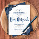 Bar Mitzvah Simple Modern Navy Blue Agate Script Invitation