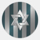 Bar Mitzvah Teal and Silver Stripe Star of David Classic Round Sticker