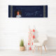 Large Long Bar Mitzvah Welcome and Mazel Tov Congratulations Banner with Personalised photo on a navy blue background with silver sparkly glitter stripe border edges. Add custom wording, fonts, or more photos and remove the gold glittler border by clicking "Customise Further."