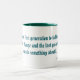 A striking two-tone mug featuring Barack Obama's powerful climate change quote. Bold teal typography on a clean white exterior with deep green interior. A meaningful gift for environmentalists, activists and anyone who believes we must act now to protect our planet.
