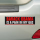 Black bumper sticker with red and white lettering. The caption says;"Barack Obama Is A Pain IN MY Gas" The top and bottom boarders have the caption repeated in small lettering.