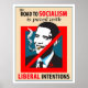 You know that saying about the road to? Well, here is the updated politics parody version; "the ROAD TO SOCIALISM IS PAVED WITH BARACK OBAMA LIBERAL INTENTIONS". Spread the word on a Barack Obama poster.