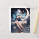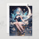 A dreamy anime-style fairy sits gracefully beneath a glowing crescent moon, surrounded by twinkling stars and soft night clouds. With shimmering blue hair, delicate wings, and an elegant celestial outfit, this enchanting design is perfect for fans of magical girls, fantasy art, and serene night time aesthetics.