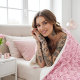 The fabric is really soft, and thick, I’m sitting here with it wrapped around me and it’s so warm! It’s really smooth and sleek on the printed side and fluffy on the back. I love it! Such good quality, so vibrant and clear, not blurry at all! See the photos I’ve attached, there’s no filters or anything on them!