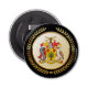 The national coat of arms of Barbados, is infused into the centre of a faux gold rimmed circle shape. Around this image, is a faux gold laurel wreath which completes the design.