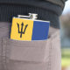 Vinyl Wrapped Flask design with Barbadian (Bajan), blue and yellow pattern with black trident