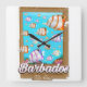 Barbados, Caribbean, Tropical Fish corals cartoon travel poster.