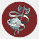 Hand drawn greataxe with Celtic patterns, jewelled handle and ribbon that says "barbarian, roll for damage" with twenty sided dice.