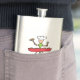 The product is a good size and came exactly as it was pictured. The lid is not attached to the flask, which could be dangerous on drunken nights... The print came out surprisingly well and looks very sharp. Would definitely recommend.