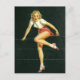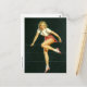 Classic PinUp card showing a beautiful pinup girl crossing a barbed wire fence and got her skirt stuck on it , painted by Al Buell (1910-1996)