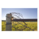 Barbed wire rolled up on fencerow near photo print