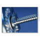 A barbell is a piece of exercise equipment used in weight training , weightlifting and powerlifting . Barbells range in length from 4 feet (1.2 m) to 8 feet (2.4 m) although bars above 7' in length are used primarily by powerlifters and aren't commonplace. The central portion varies in diameter, but is close to one inch (2.54 cm), and is often engraved with a knurled crosshatch pattern to help lifters get a good grip. Disc weights (plates) are slid onto the outer portions of the bar to obtain the desired total weight. These weights are often secured with collars to prevent them from sliding off during the exercise (which can result in injuries ) or flinging the unevenly-loaded barbell through the air.
