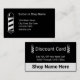 Back: Black and White Discount Card. All text can be edited to display a custom message. Two barber poles are the back side.