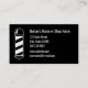 Back: A barber pole is on the left. Next to the barber pole are fields for your text, such as your name, business name, address, phone number, email, and/or website. The text is white and the background is black.