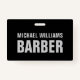 Black and grey modern badge, bold text, eye-catching, remarkable, masculine. Great for free-lance barbers.