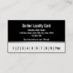 Get a free service on your 10th visit. Numbers 1 to 9. Free. There are fields for your text, such as your name, street address, and phone number. The text is white and the loyalty card is black. The other side has a barber pole image that you can leave as is or replace with your logo.