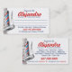 This customisable business card for barbers and barbershops displays a barber pole, clippers and scissors/shears. Can use back side for notes or as appointment card. Uses the traditional red & blue barber colours. All graphics created by Dale Arthur for Whiz Creations.