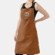Professional apron features a modern design with brushed metallic gold monogram emblem on sable brown leather look textured background.