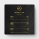Luxury exclusive price list for a barber hairstylist shop in faux gold on a solid black classy elegant leather look background. Please note that the leather look is printed.
