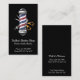 A custom design of a barber shop pole with a razor and a pair of scissors. This business card can be used by a barber or barber shop. Easy to edit. Background is black.