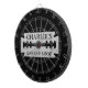Barber shop dartboard with razor blade design. Custom decor for men's hair salon. Stylish gift for hair salon owner. Make your own trendy barber shop present for boss, coworker, employees etc. Unique hair stylist gift ideas. Personalised with your own business name or company slogan. Masculine decoration with sharp edge. Black and white.