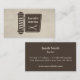 A business card with retro elements such as the old school barber shop rotating light and a signboard with a scissors icons. The masculine colour palette of largely brown and beige grungy texture background makes this most suited for male barbers and hair stylists. Personalise easily with your business details on the reverse page.