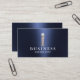 Barber Shop Modern Navy Blue Metal Hair Stylist Business Card