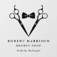 Modern masculine black window cling for barbers and barbershops that features simple typography and an abstract illustration of a bowtie and scissors forming the lapels of a jacket. Personalise with your name, the shop name and whether walk-ins are welcomed.