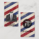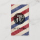 Barbershop Business card with beard , tuxedo, skinny tie graphic. Card has a grunge texture to it and traditional barber background colours. Perfect for a barber, barbershop, barber shop, or stylist.