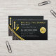 This is a barbershop business card design. The design is represented by gold barber pole and scissors on a grey background. All artwork was created and illustrated by Dale Arthur of whizcreations.com.