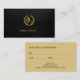 Luxury business template appointment card for a barber shop in faux gold on leather look elegant classy solid black elegant background. Please note that the leather look and gold effect are printed. You can change the background colour on the back side and the text fonts and colours after pushing CUSTOMIZE button. You may also replace the logo on the front.
