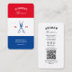 Looking for a customisable business card for your barbershop? Our Elegant Modern Barbershop Barber Red White Blue Scissors Haircut Hairstylist design with QR code is the perfect addition to your establishment!