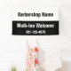 A banner lets everyone know your barbershop is open and welcomes walk-ins. The white text at the bottom says 'Walk-Ins Welcome'. The white text is on a black stripe. A white stripe at the top has black display text for the shop's name. White display text is also available for the barbershop's phone number.
