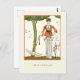 A postcard with the fashion illustration from 1913, Creation Paquin by George Barbier (1882-1932). A woman with an umbrella under a tree in a white pleated dress and orange jacket. A design from the French fashion house of Paquin (Maison de Couture). Jeanne Paquin was a dressmaker and fashion designer. Isidore Paquin ran the business.