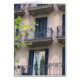 Photo of a building in Barcelona Spain with iron balconies, shuttered windows, decorated with Roman costumed women in Art Nouveau style.
