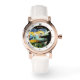Elegant Art Watch / Patriotic Barcelona famous Lizard Statue Fountain Watch. Home to a beautiful Park Guell in Barcelona makes this mesmerising mosaic statue of water spitting lizard (by Gaudi) fabulous souvenir, original gift from Catalonia / Spain. Fashion Watch for your holiday, anniversary reminder of your travels, mothers day art gift. Original Photography/Art/Design by work4dream.