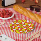 Badge of Barcelona with flag of Spain colours, rounded shape.