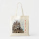 A beautiful view of the Sagrada Familia Basilica in Barcelona in Spain printed on a souvenir tote bag.